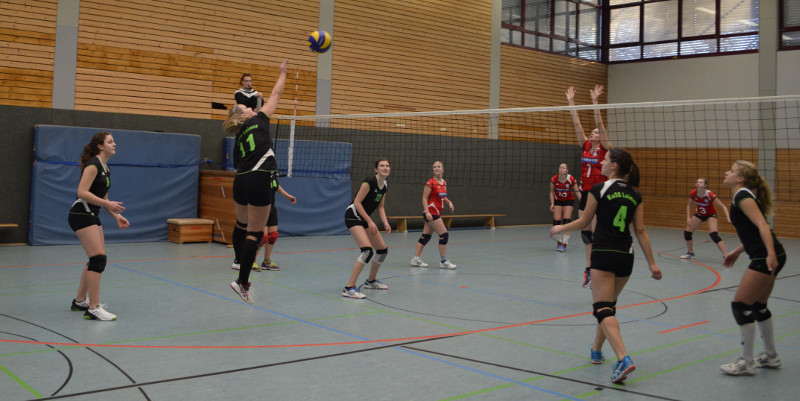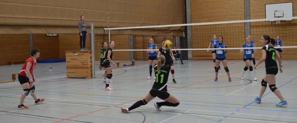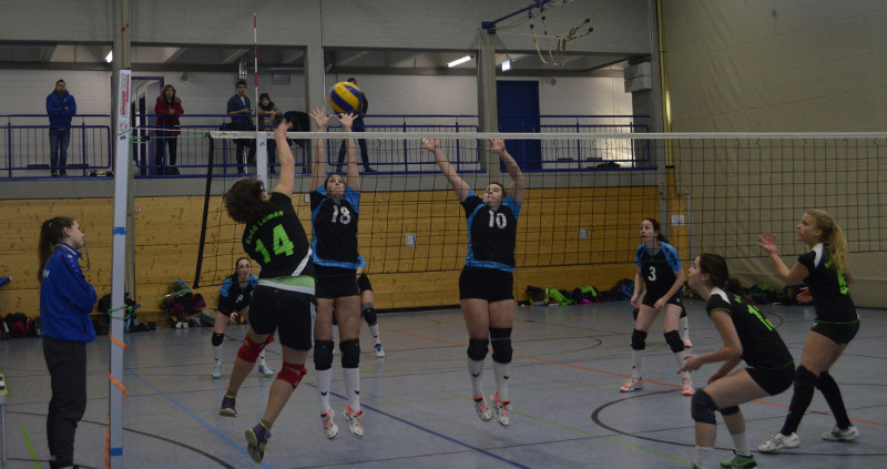 Wir begannen gegen die VSG Mannheim. Von Beginn an überzeugten wir durch starke Annahmen, Angriffe und Angaben und behielten in Satz 1 und 2 deutlich die Oberhand. Nach unserer 2:0 Führung kam die VSG dann doch ins Spiel, zudem vermehrten sich unsere Eigenfehler und wir mussten die nächsten zwei Sätze abgeben. So kam es zum entscheidenden Tie-Break. Die Anspannung im Team war deutlich zu spüren; nach einer 2:0 Führung mussten wir den gesamten Satz über einem Rückstand hinterherlaufen, sodass wir schnell mit 10:14 hinten lagen. Mit riesigem Kampfgeist, toller Mannschaftsleistung sowie einer nervenstarken Aufschlagserie von Saskia inkl. Matchball-Ass konnten wir den Satz noch mit 16:14 für uns entscheiden.