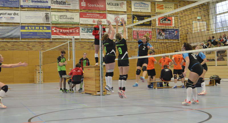 Als Tabellendritter musste dringend ein Sieg gegen Bruchsal her. Selbstbewusst starteten wir in das erste Spiel und setzten die Gegnerinnen mit unseren Aufschlägen und Angriffen unter Druck. So gingen wir mit 2:0 in Führung (25:22, 25:22). Leider ließen wir den Gegner ab dem dritten Satz zunehmend ins Spiel kommen. Platzierte Aufschläge und Angriffe der Bruchsaler Mannschaft und abnehmende Effizienz auf unserer Seite führten zu zwei Satzgewinnen der Gegner (14:25, 18:25) und zum entscheidenden Tie-Break. Hier bewiesen wir Nervenstärke und Kampfgeist und konnten den Satz (15:10) und somit das Spiel für uns entscheiden.