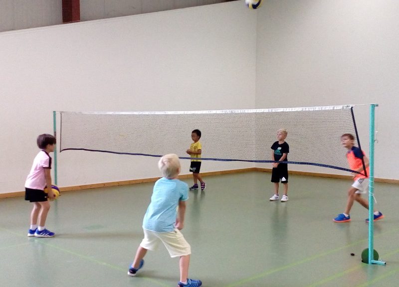 Fünfundzwanzig Kinder fanden am 4. Tag der KuSG-Sommerolympiade den Weg in die Georg-Koch-Halle. In drei Gruppen konnten die Mädchen und Jungen die Grundlagen des pritschens und baggerns und den Aufschlag lernen. In kleinen Turnieren 1:1 wurden das neu Gelernte umgesetzt. Bei den jüngeren Kindern war auch fangen und werfen noch erlaubt. Aber auch hier sah man im Laufe des Nachmittags tolle Fortschritte.